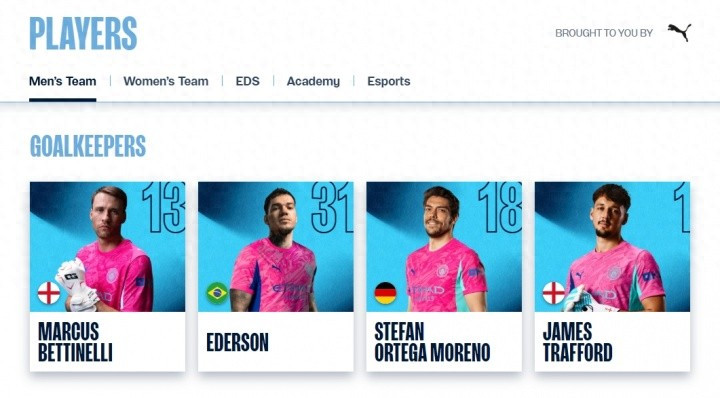 目前曼城一线队中注册的门将有4人,分别是贝蒂内利、埃德森、奥尔特加和特拉福德。